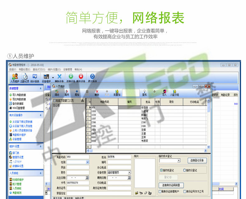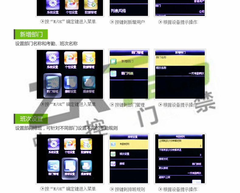 · 考勤功能: 外接定時(shí)響鈴、夏令時(shí)、記錄查詢、工作代碼、短消息