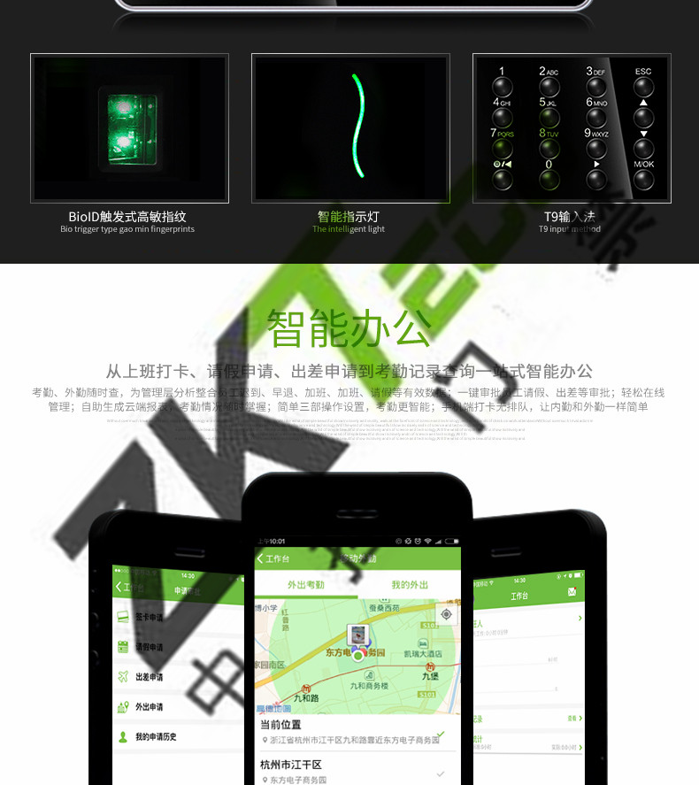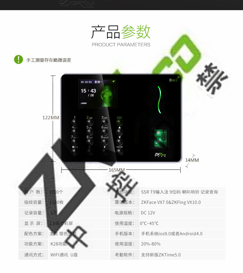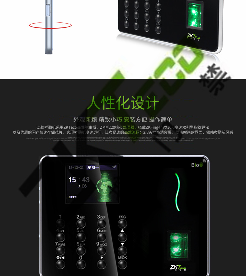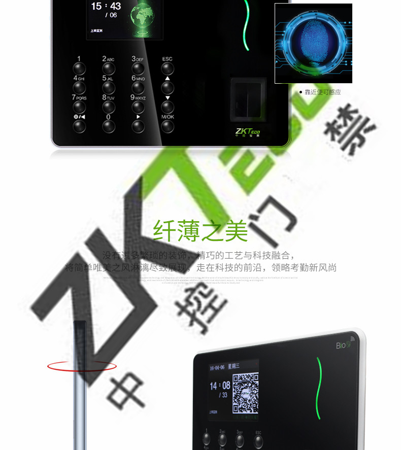 中控w6考勤機 超薄彩屏打卡機