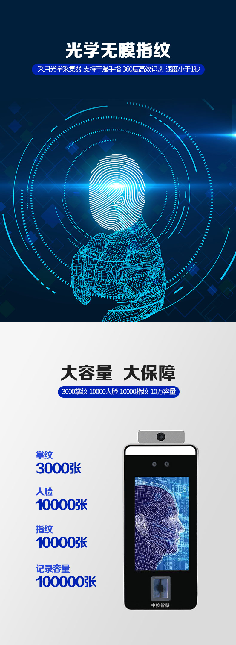 非接觸式掌紋門禁xface600plus是一款測溫門禁智能終端,搭載測溫模塊;選配WiFi導(dǎo)數(shù)據(jù) 非接觸式掌紋門禁xface600plus系列基于熵基科技深度學(xué)習(xí)算法,通過對人的掌紋或臉部、指紋特征信息實現(xiàn)快速身份識別,讓人們享受到更加安全、便捷、高效的通行體驗,推出的非接觸式混合生物識別終端。xFace600-Plus還搭載高性能紅外體溫檢測模塊,人員通行時即時檢測人表體溫并報警,提供更為安全、便捷、高效的通行體驗。另外,xFace600-Plus廣泛適用于社區(qū)、校園、醫(yī)院、景區(qū)、酒店、商場、寫字樓、公共服務(wù)場所等場景。